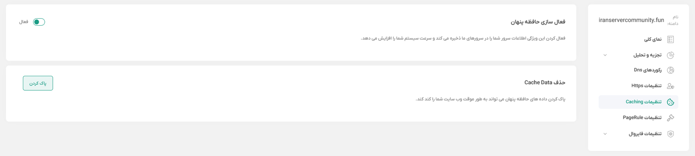 بعد از ورود به پنل CDN، وارد بخش تنظیمات Caching می‌شویم.