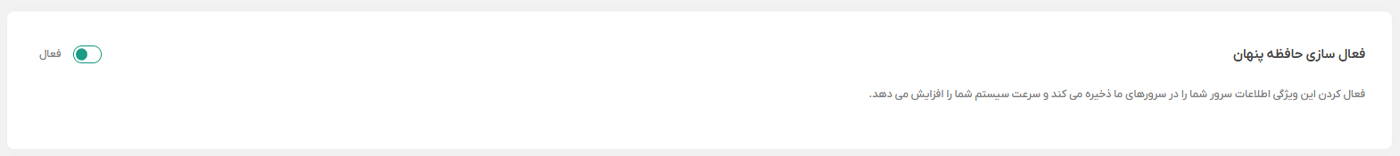 فعال بودن دکمه Caching در پنل