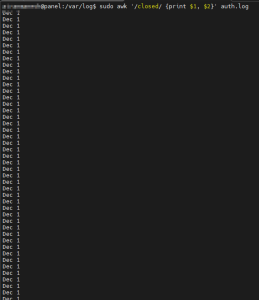 awk ‘/closed/ {print $1, $2}’ filename.txt