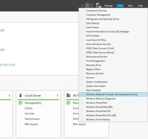 - از لیست ظاهر شده، گزینه Windows Defender Firewall with Advanced Security را انتخاب کنید
