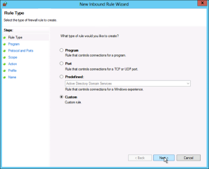- از گزینههای Rule Type، گزینه Custom را انتخاب کنید و روی Next کلیک کنید.