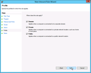 - پروفایل هایی که باید با قانون ایجاده شده مرتبط باشند را انتخاب کنید و روی Next کلیک کنید.