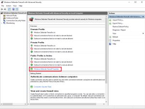 در غیر این صورت، روی گزینه Windows Defender Firewall Properties کلیک کرده و سرویس را برای هر پروفایل روشن کنید.