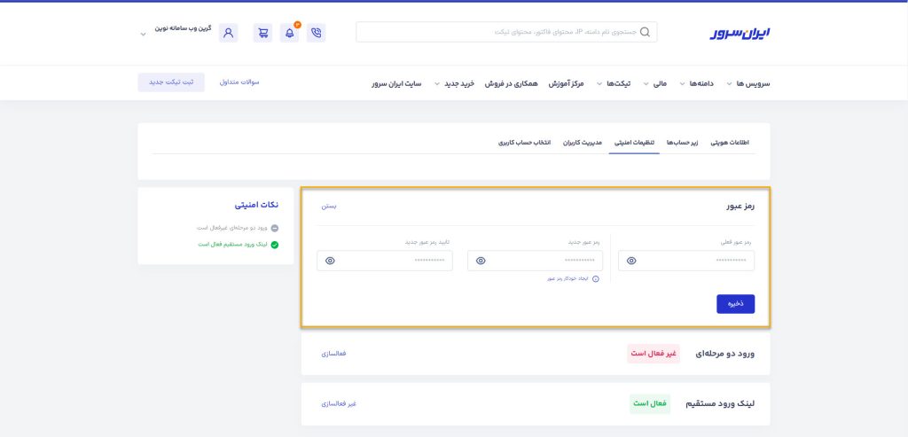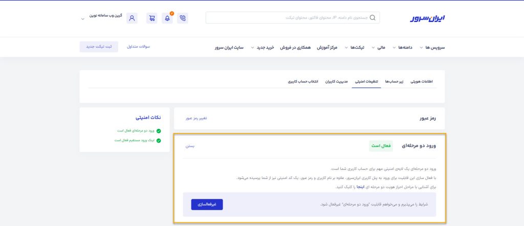 حتما تا به حال قسمت تنظیمات امنیتی را در پنل کاربری خود در ایرانسرور دیدهاید. این تنظیمات شامل 3 قابلیت امنیتی است که در ادامه با هرکدام از آنها آشنا میشویم.