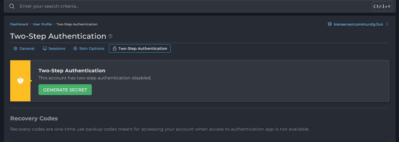 ورود به بخش Two-Step Authentication دایرکت ادمین