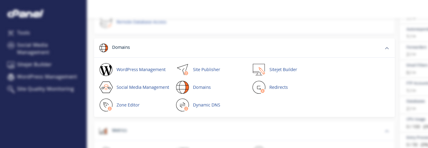 در صفحه اصلی سیپنل به دنبال بخشی به نام Domains بگردید. در این بخش گزینهای به نام Zone Editor وجود دارد. این قسمت مخصوص مدیریت رکوردهای DNS دامنه است. با کلیک روی این گزینه، وارد صفحهای میشوید که میتوانید همه رکوردها را ببینید یا رکورد جدید اضافه کنید.