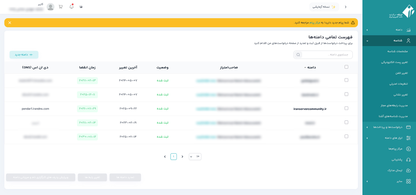 به سایت nic.ir بروید و با شناسه کاربری خود وارد شوید.