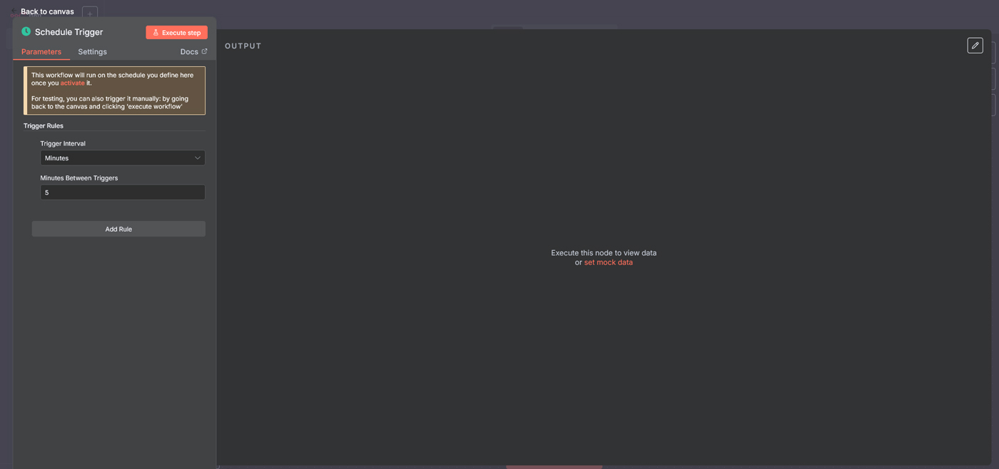 مرحله دوم: زمانبندی اجرای خودکار با Schedule Trigger