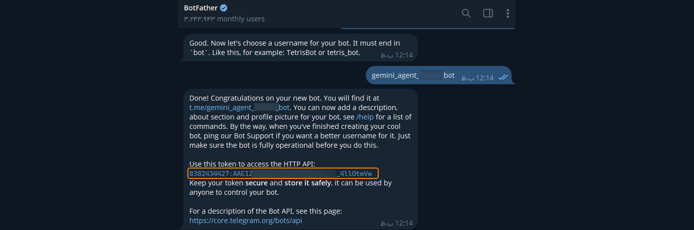 خروجی تلگرام هم اگر همه مراحل را درست انجام داده باشید به این شکل خواهد بود: