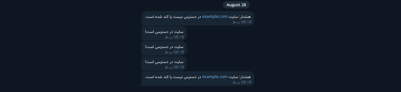 به این ترتیب، هر بار که سایت مشکل داشته باشد، تلگرام فوراً به شما اطلاع میدهد.