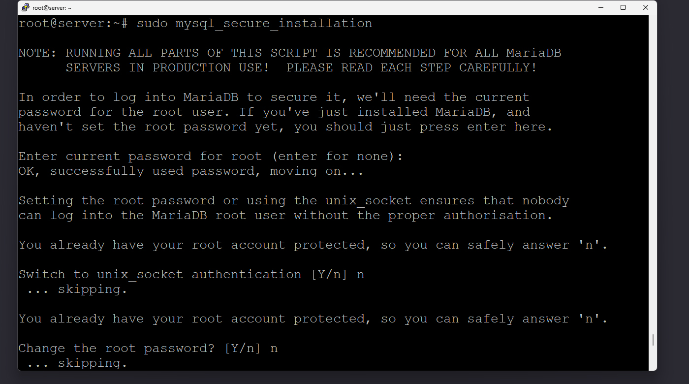 sudo mysql_secure_installation
