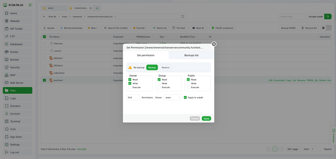 این تنظیمات برای امنیت و اجرای صحیح سایت ضروری هستند. سطح دسترسی اشتباه باعث خطاهای 403 یا اجرا نشدن فایلها میشود.
