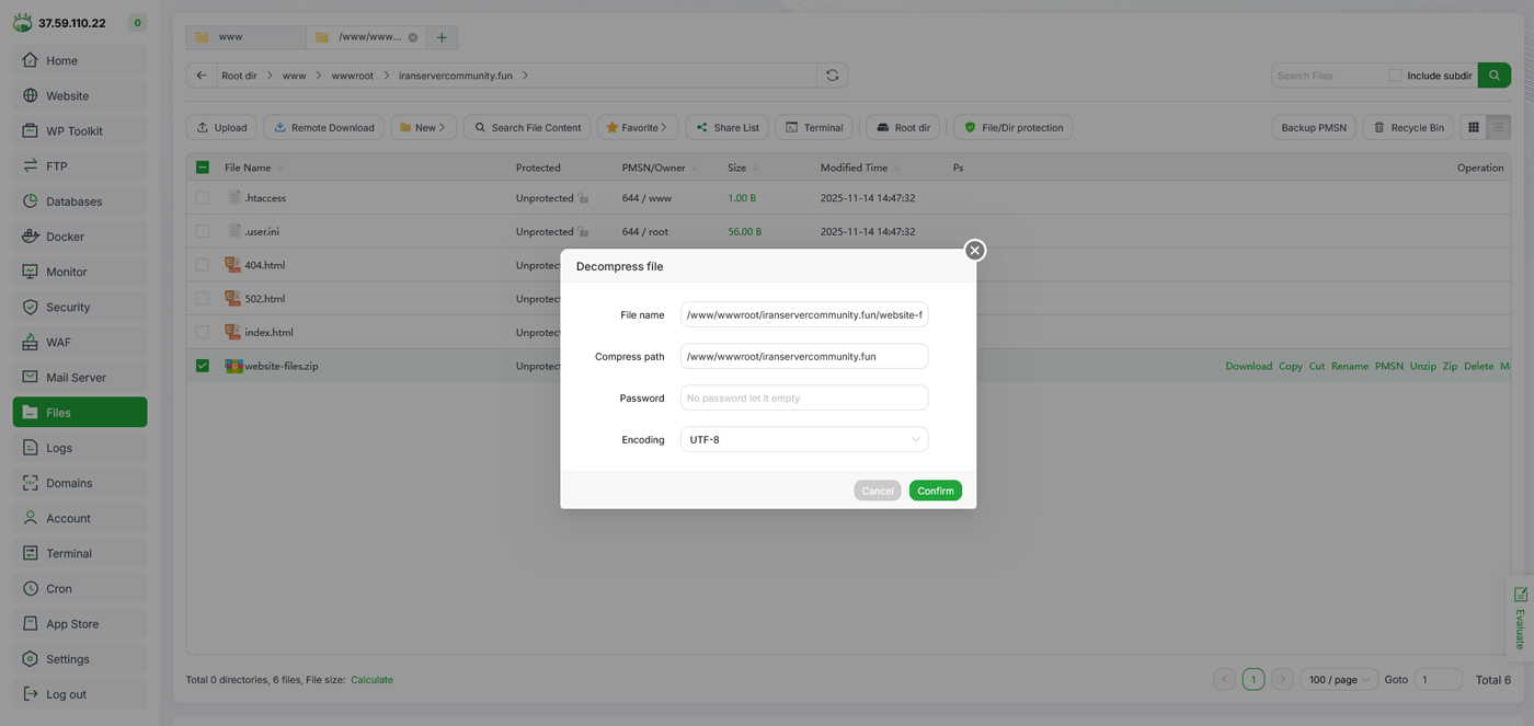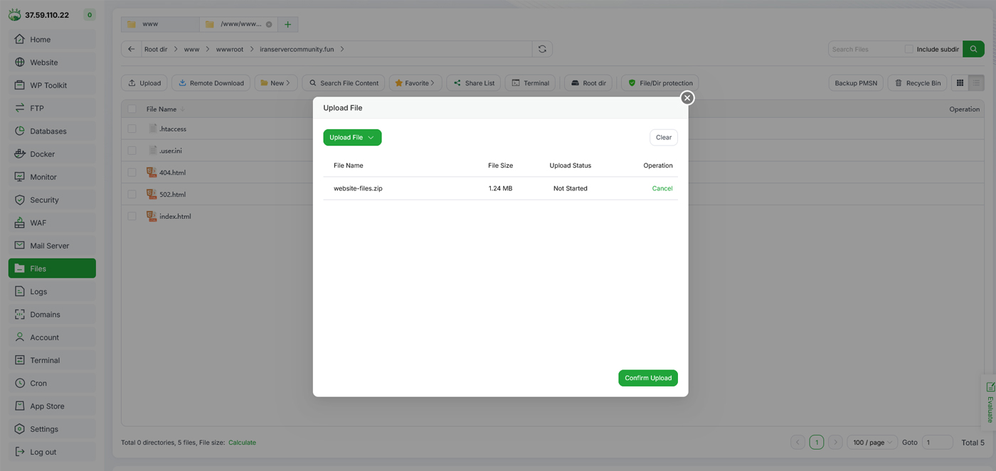 در این راهنما هدف ما این است که فایلهای وبسایت را در پنل aapanel بارگذاری کنیم و سایت را برای اجرا روی VPS لینوکسی ایرانسرور آماده کنیم.