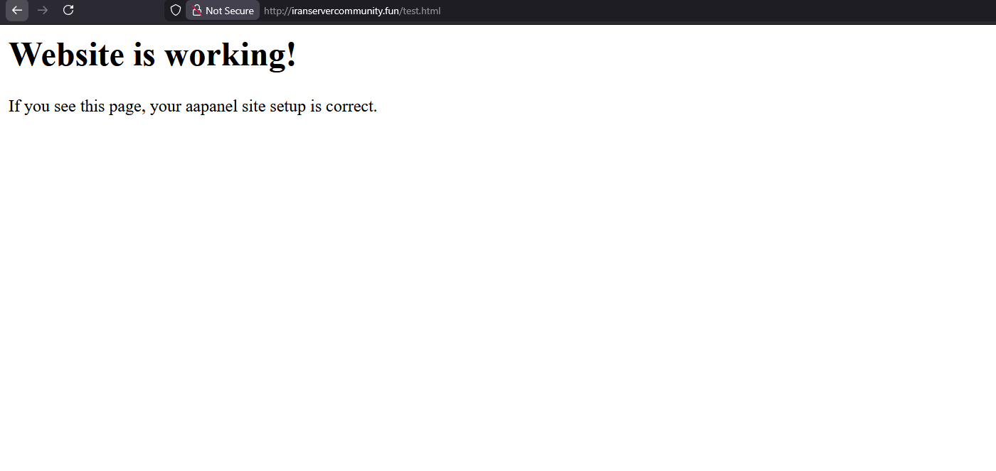 بعد از انجام مراحل بالا دامنه را در مرورگر باز کنید. اگر DNS هنوز فعال نشده باشد، میتوانید سایت را با IP آزمایش کنید. اگر سایت لود نشد مسیر Document Root یا وجود فایل index.html و index.php را بررسی کنید.