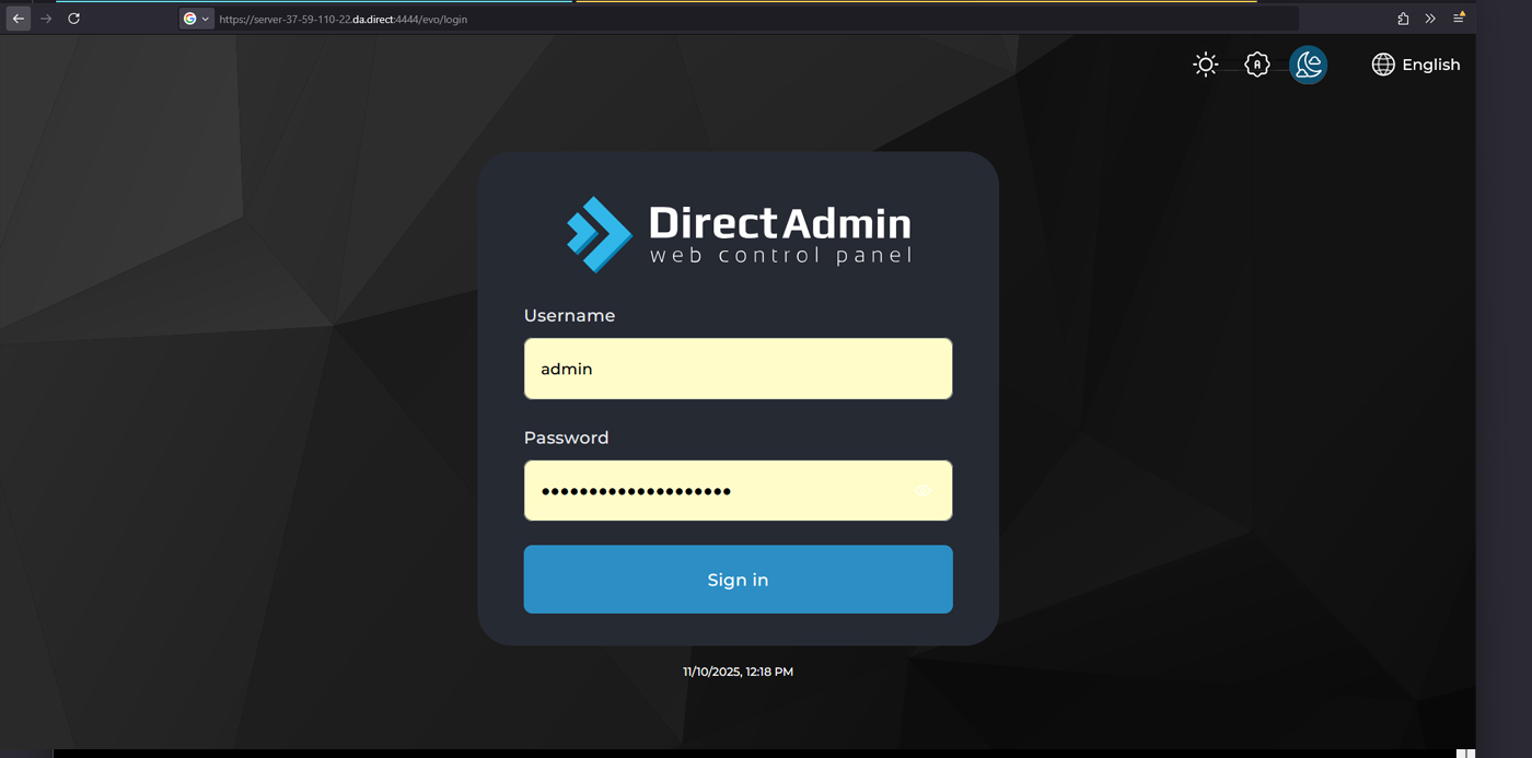 مرحله چهارم: ورود به پنل دایرکتادمین با پورت جدید