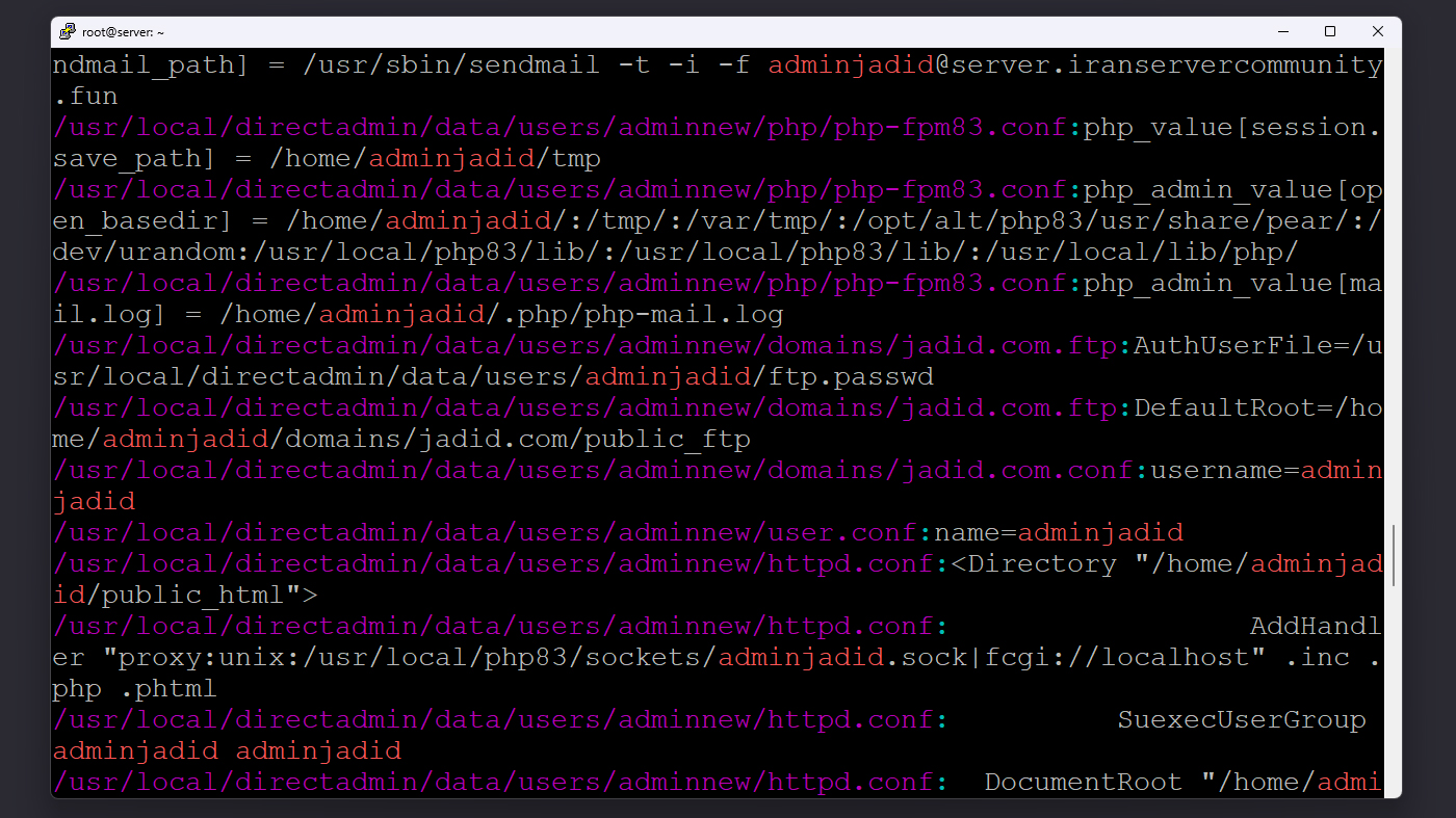 دایرکتادمین ممکن است در بعضی فایلهای پشتیبان یا تنظیمات کلی، همچنان نام کاربر قبلی را نگه داشته باشد. برای اطمینان، میتوانید با دستور جستجوی زیر همه مواردی را که شامل نام کاربر قدیمی هستند پیدا کنید:
