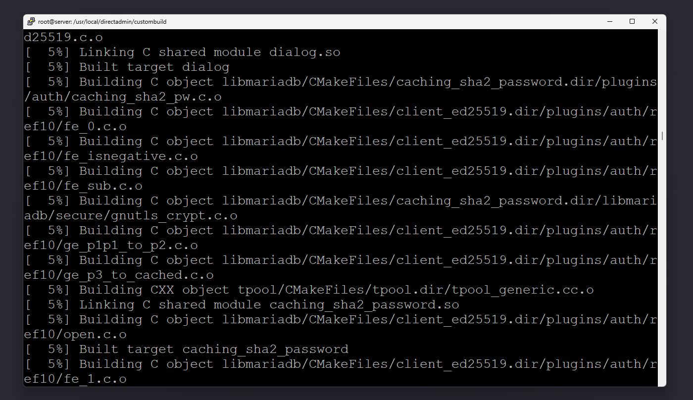 علاوه بر PHP، سایر سرویس‌ها مانند Apache، Nginx یا MariaDB نیز از طریق CustomBuild قابل نصب و تغییر هستند. به عنوان مثال، برای تغییر نسخه MariaDB می‌توانید از دستورات زیر استفاده کنید: