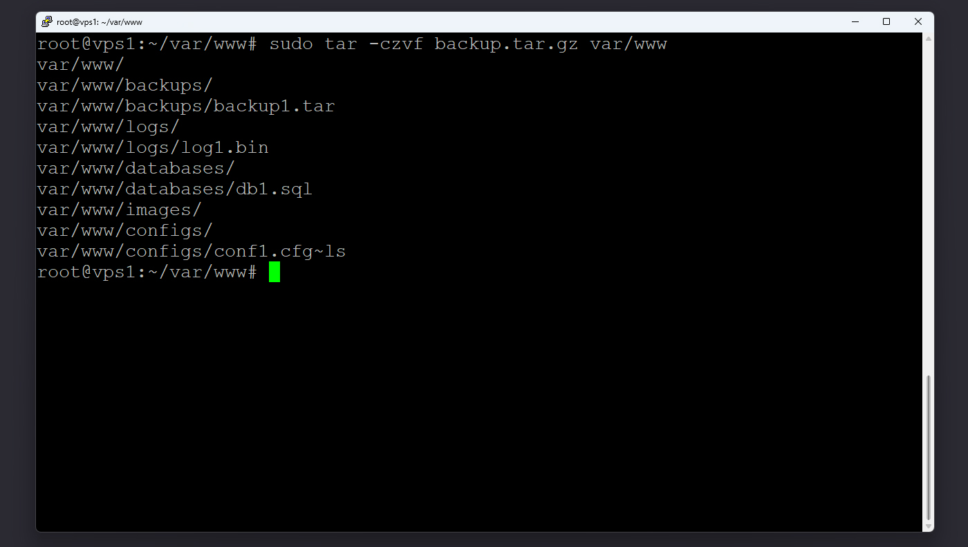 ابزار tar یکی از پرکاربردترین ابزارها در لینوکس برای ایجاد فایلهای بکاپ فشرده است. این ابزار میتواند یک دایرکتوری کامل را در قالب یک فایل آرشیو ذخیره کند.