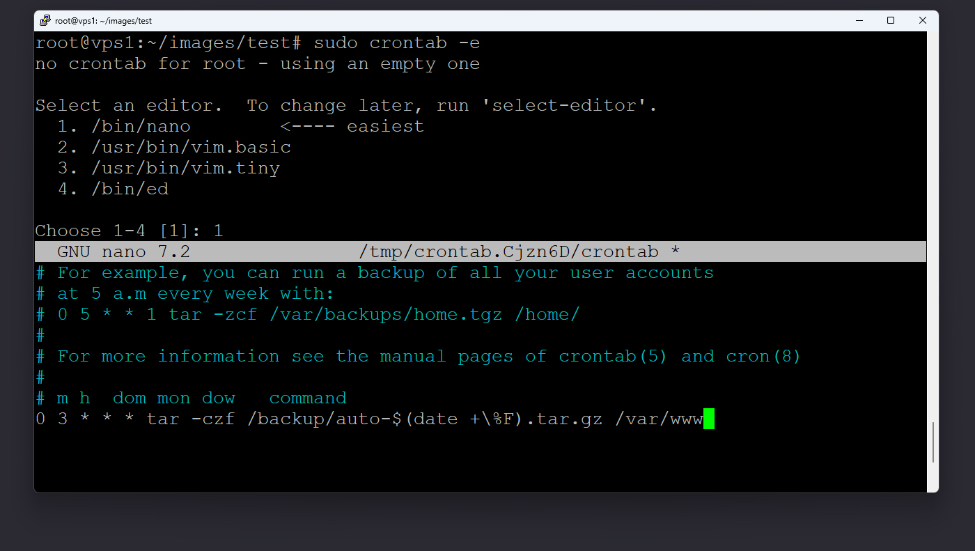 0 3 * * * tar -czf /backup/auto-$(date +\%F).tar.gz /var/www