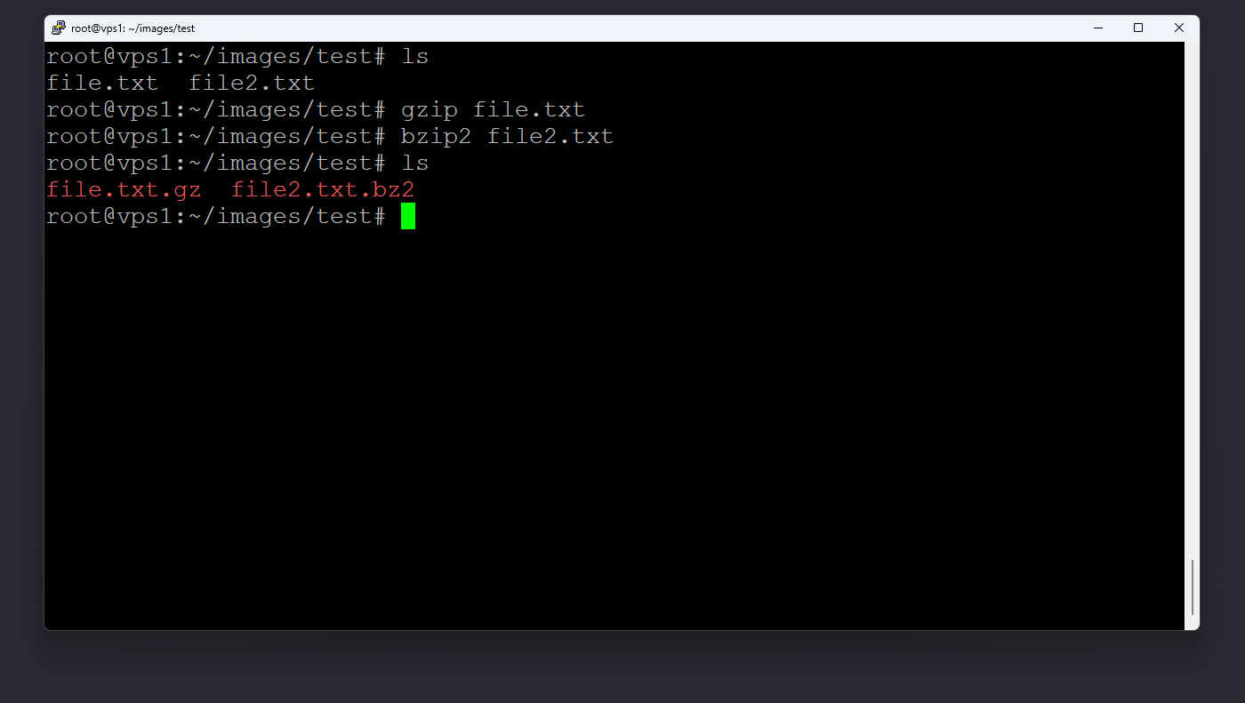 مرحله هفتم: فشردهسازی فایلهای تکی با gzip یا bzip2