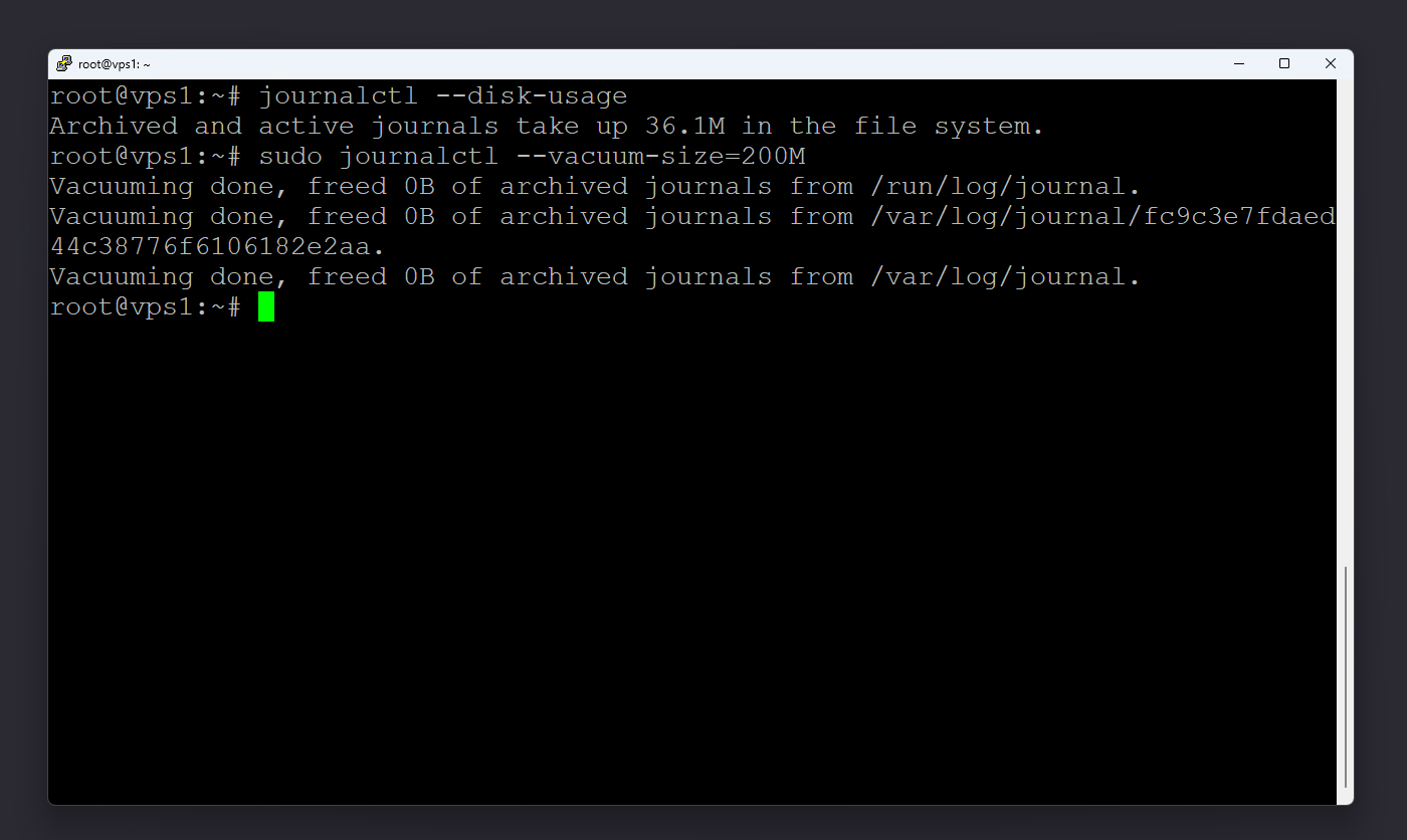 مرحله هشتم: کاهش حجم لاگهای journalctl