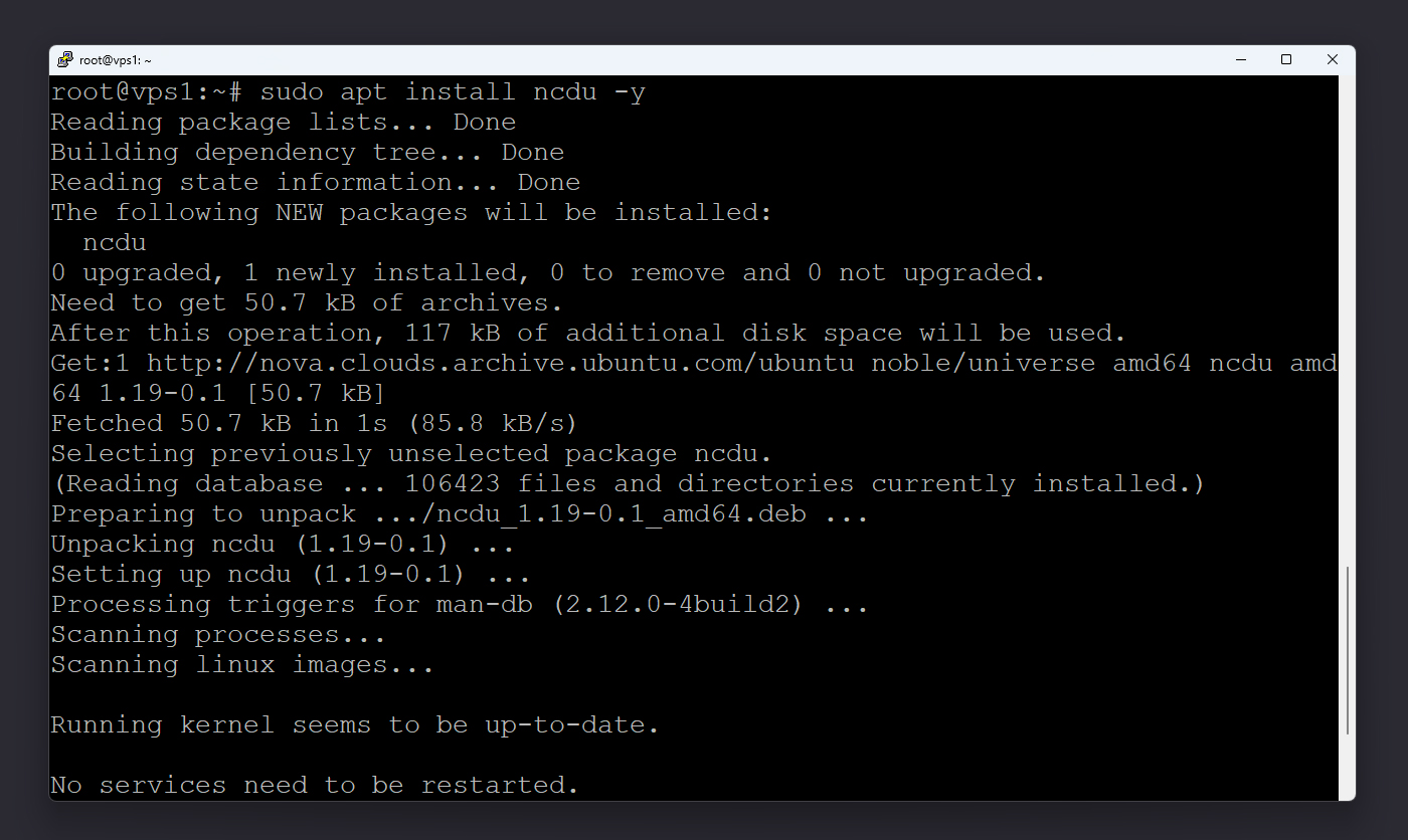 sudo apt install ncdu -y
