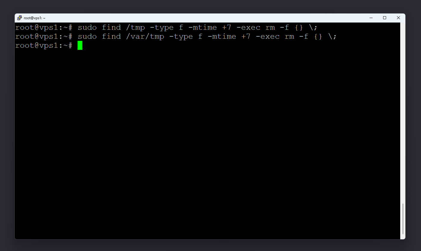 پوشههای /tmp و /var/tmp محل ذخیرهی فایلهای موقت سیستم هستند. فایلهای این مسیرها معمولاً کاربرد دائمی ندارند و میتوانند بهصورت امن حذف شوند. اگر میخواهید فقط فایلهای قدیمیتر از ۷ روز پاک شوند، از دستورات زیر استفاده کنید: