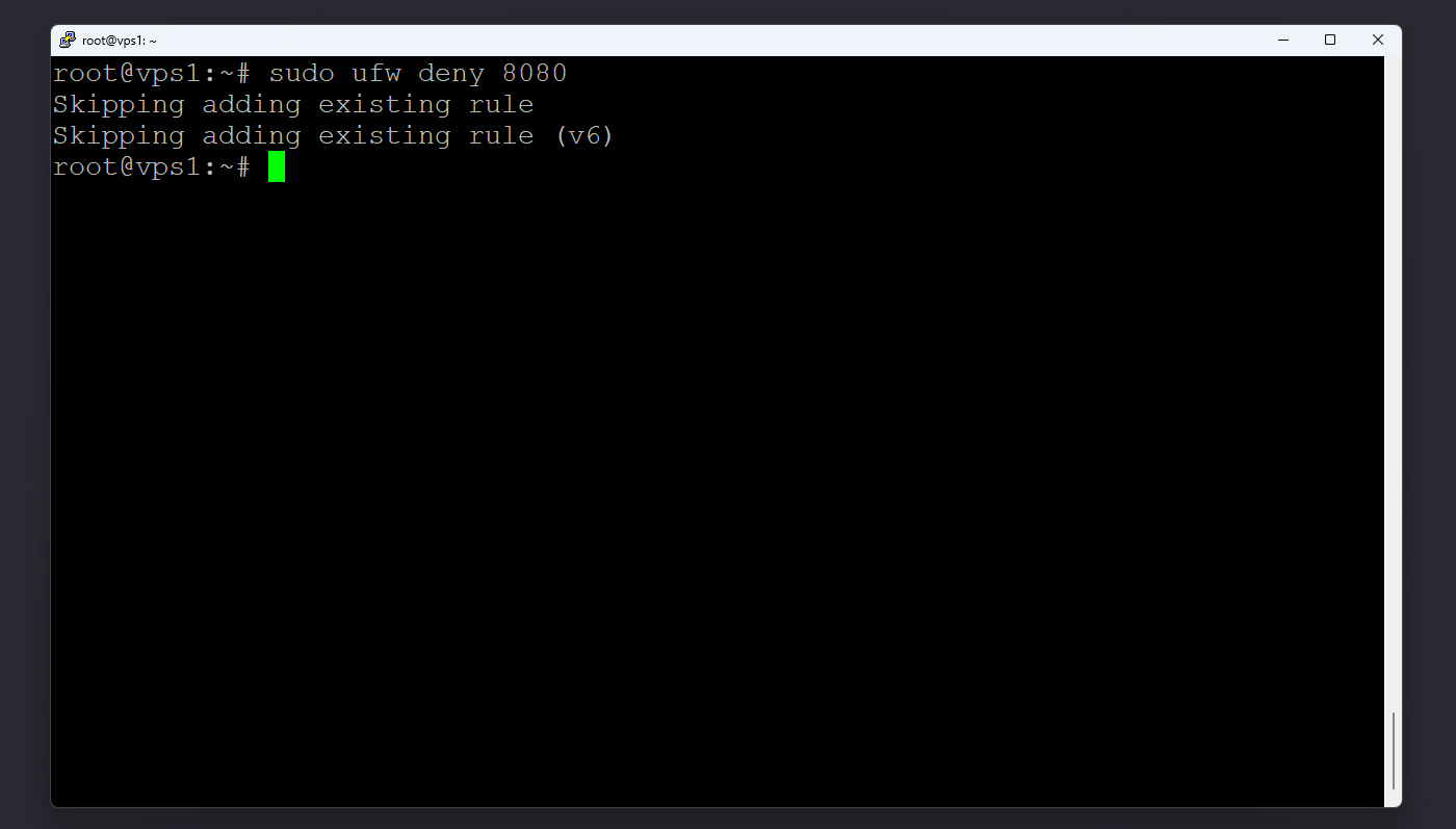 sudo ufw deny 8080