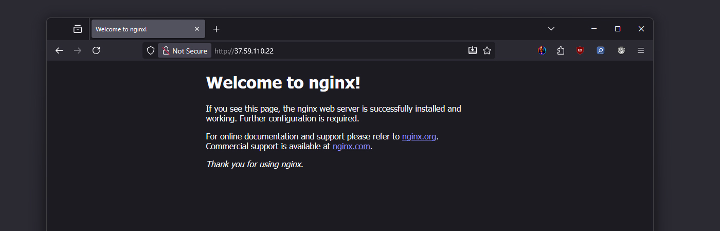 مرورگر خود را باز کنید و آدرس IP سرور را وارد کنید. اگر نصب درست انجام شده باشد، صفحه پیشفرض Welcome to Nginx نمایش داده میشود. در غیر این صورت، وضعیت فایروال یا سرویس را دوباره بررسی کنید.