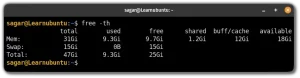 دستور free -th در لینوکس اطلاعات مربوط به استفاده از حافظه (RAM) و Swap را نمایش میدهد.