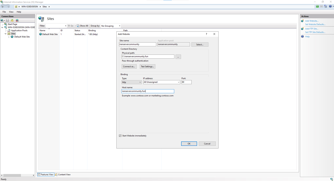 در پایان با انجام این مراحل سایت شما روی IIS بهدرستی ایجاد و راهاندازی میشود و امکان مدیریت کامل آن از طریق IIS Manager فراهم خواهد شد.